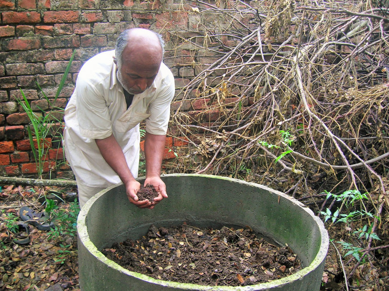 Organic way of Farming: Farmer producing tons of GREEN compost by decomposing the green trees and leaves